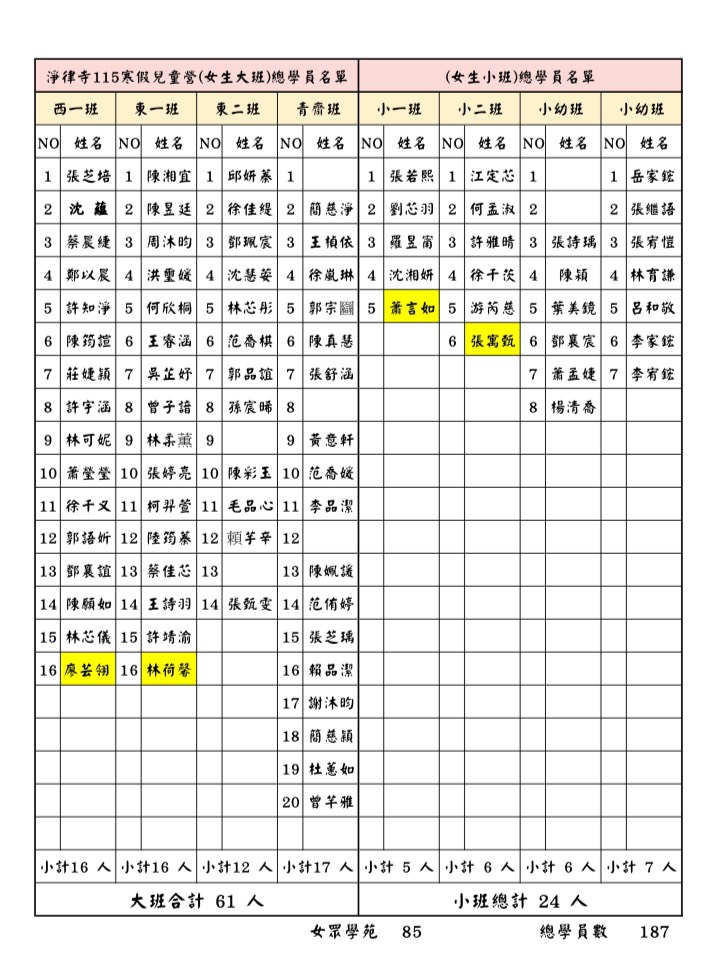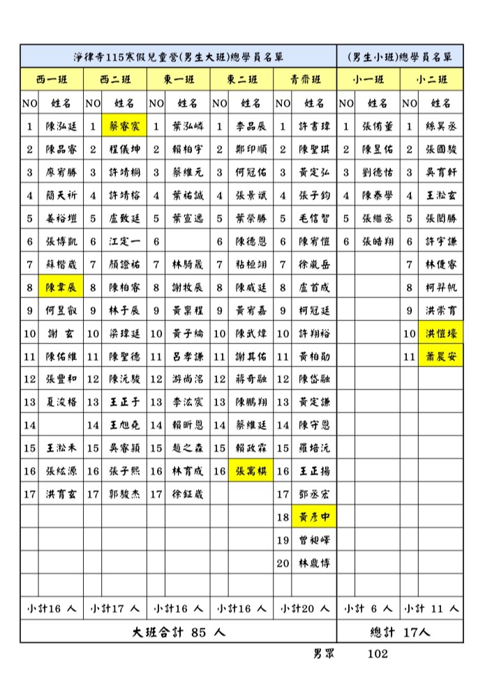 報到處所:男生(本寺教學大樓一樓停車場);女生及小幼班以下男女生(女眾學苑)