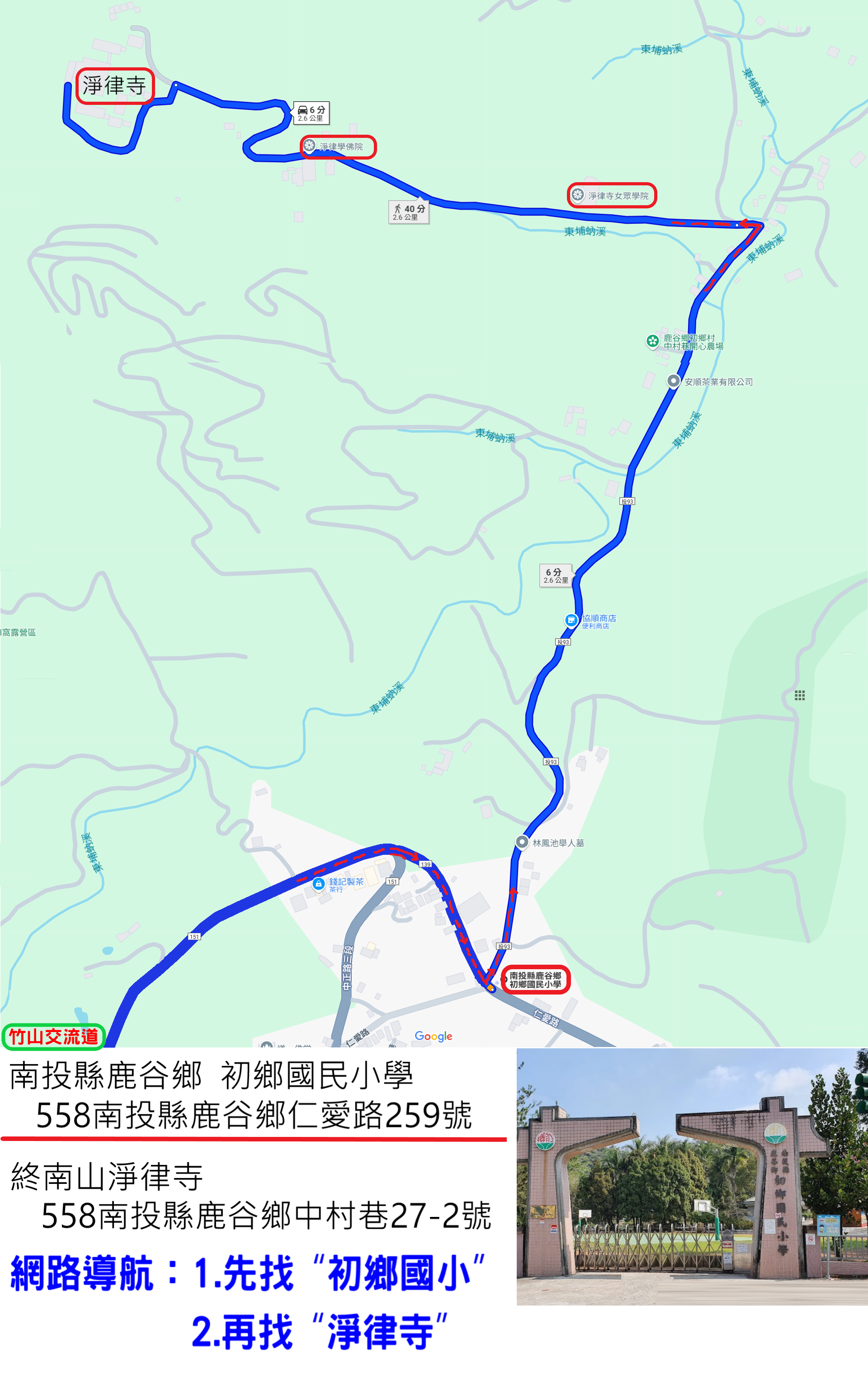 報到地點:南投縣鹿谷鄉初鄉村中村巷27-2號 (導航設-初鄉國小-淨律寺報到處或女眾學苑)